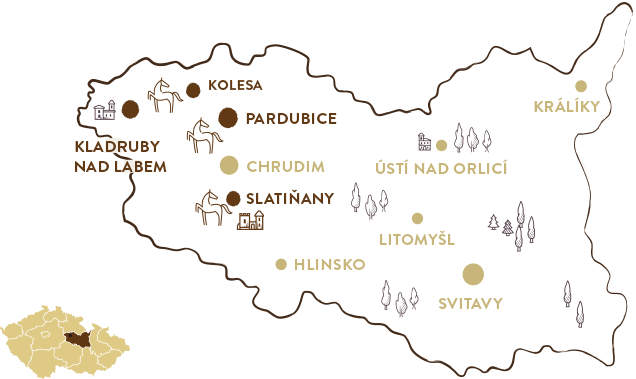 Východní Čechy jsou regionem známým jako ráj koní a jejich milovníků. Je plný unikátností, které nikde jinde v České republice nenajdete. Areál Dostihového závodiště Pardubice je domovem Velké pardubické steeplechase. Její věhlas a náročnost z ní udělalo jeden z nejprestižnějších dostihů v Evropě. Pokud nejste zrovna fanoušky sportovního reje, rozhodně byste měli navštívit Národní hřebčín Kladruby nad Labem (UNESCO). V jeho barokních stájích žije původní české plemeno – starokladrubský kůň. Účel těchto vznešených tvorů je ryze ceremoniální a dodnes slouží na některých evropských královských dvorech. Vašemu putování po stopách koňských kopyt by neměly uniknout Slatiňany. Městečko má ke koním blíž, než si myslíte. Najdete v něm hřebčín, kde se chovají starokladrubští vraníci. Co by kamenem od stájí dohodil se tyčí slatiňanský zámek s unikátním hipologickým muzeem světového formátu. Pro malé i velké objevitele je jako stvořená Švýcárna – Muzeum starokladrubského koně. Její prostory jsou prošpikovány interaktivními expozicemi s možností osedlání největšího plyšového koně na českém území. A kdyby přece jen Vás zastihla touha toulat se přírodou a zažít opravdový kontakt s koňmi, neváhejte a využijte hipostezek a návštěv rančů.